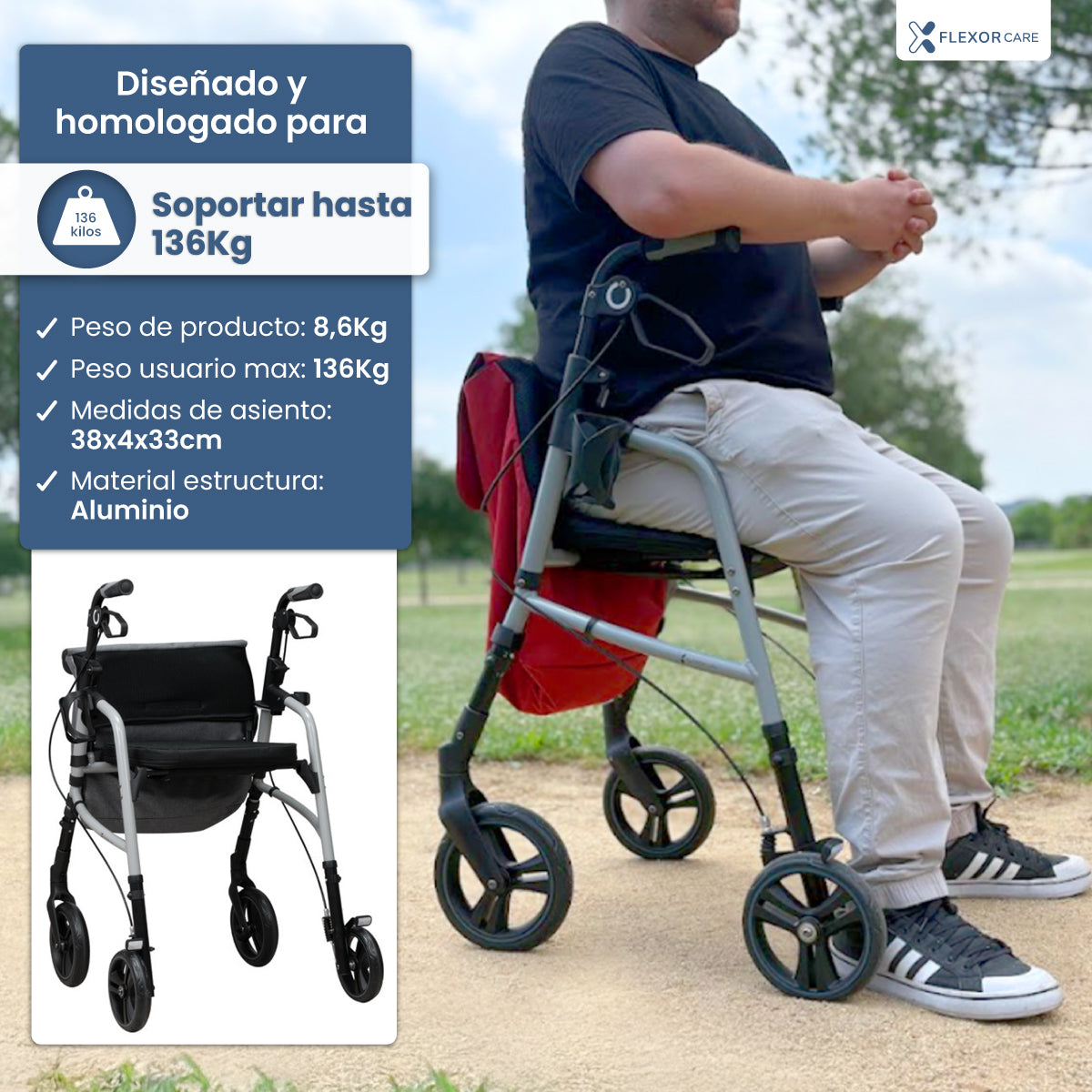 Andador para adultos mayores con asiento y bolsa – Ligero, plegable y ajustable
