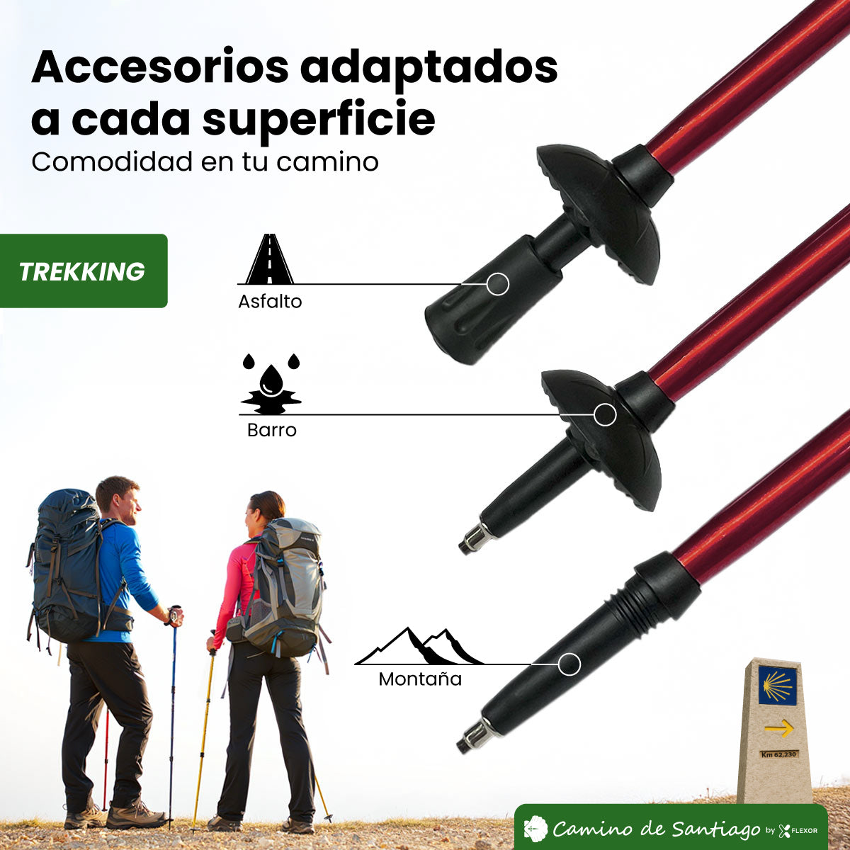 Bastón de Trekking "Camino de Santiago" – Altura Ajustable, Amortiguación, Aluminio Ligero