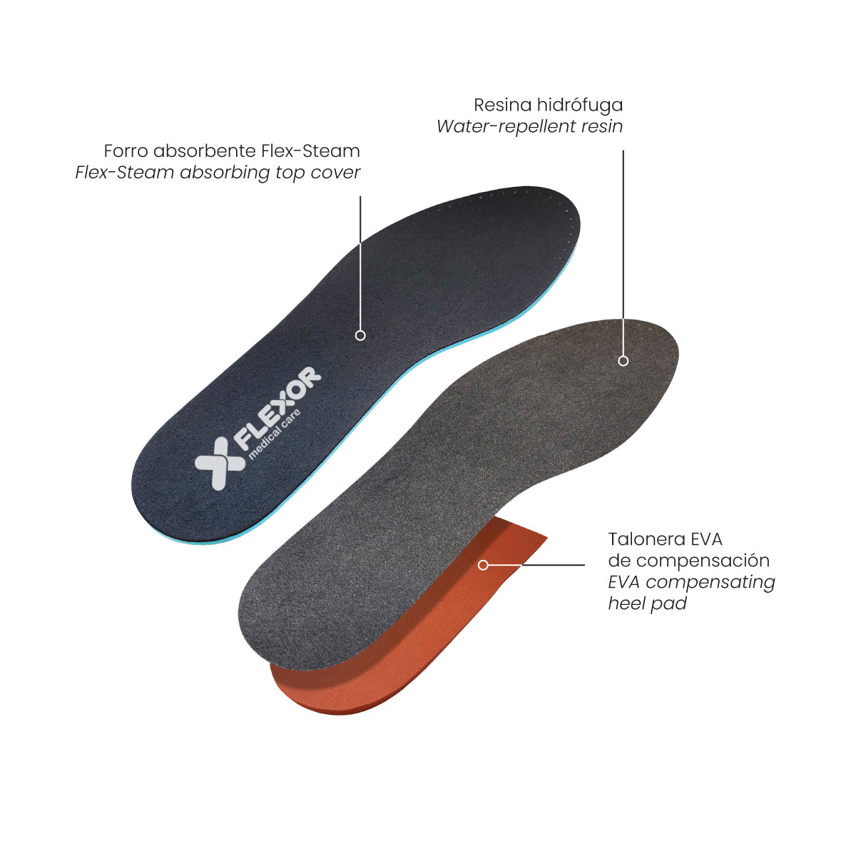 Forro absorbente Flex-Steam TRANSPIRABLE hipoalergénico, laminado con látex de alta absorción de impacto que ofrece un máximo CONFORT.
